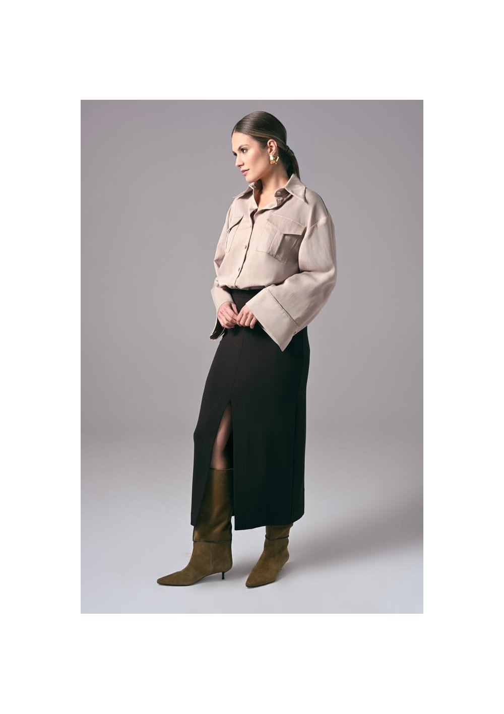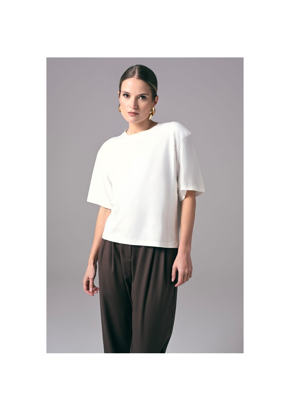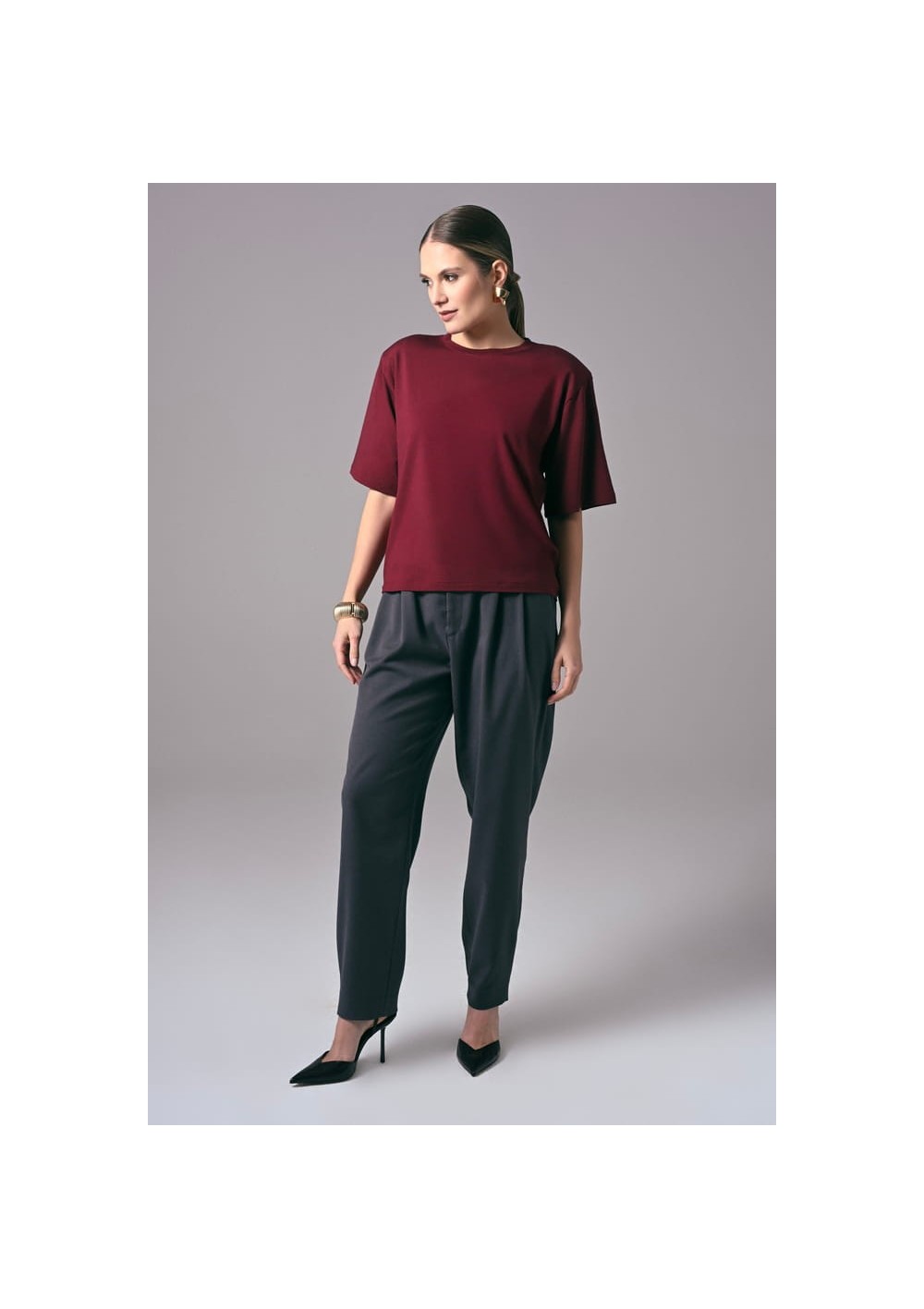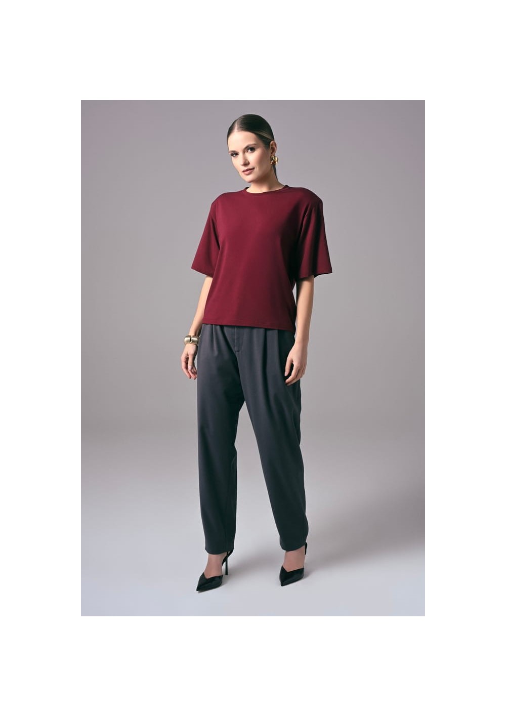 Lekko zaokrąglona linia nogawki buduje nowoczesną sylwetkę i nie opina nóg, zachowując elegancki charakter.
