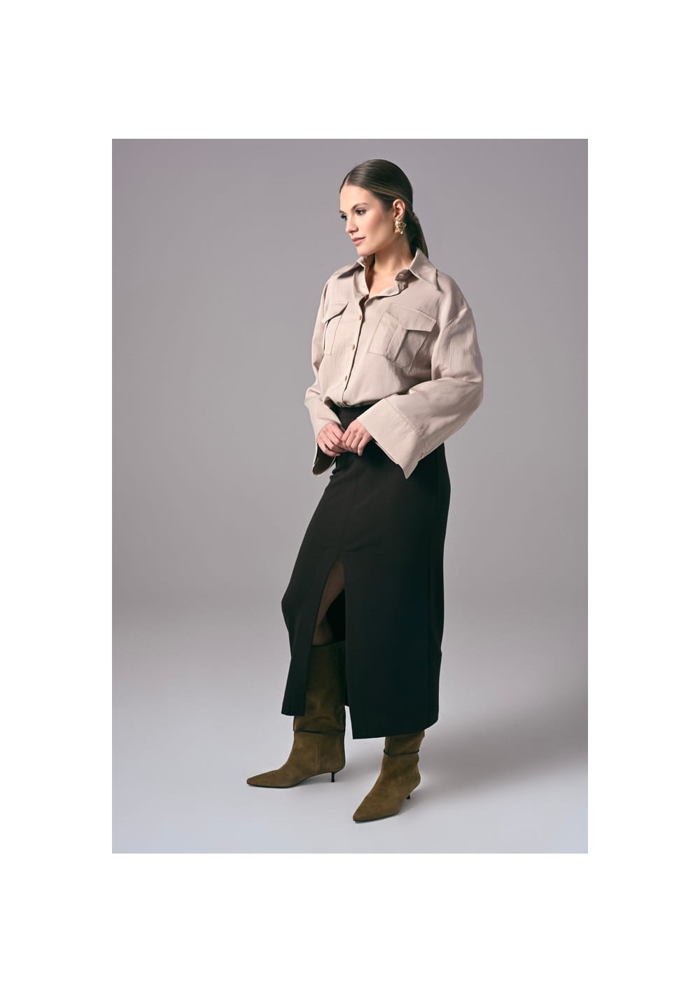 Kieszenie boczne i szlufki na pasek umożliwiają różne sposoby stylizacji – od formalnych po bardziej codzienne.